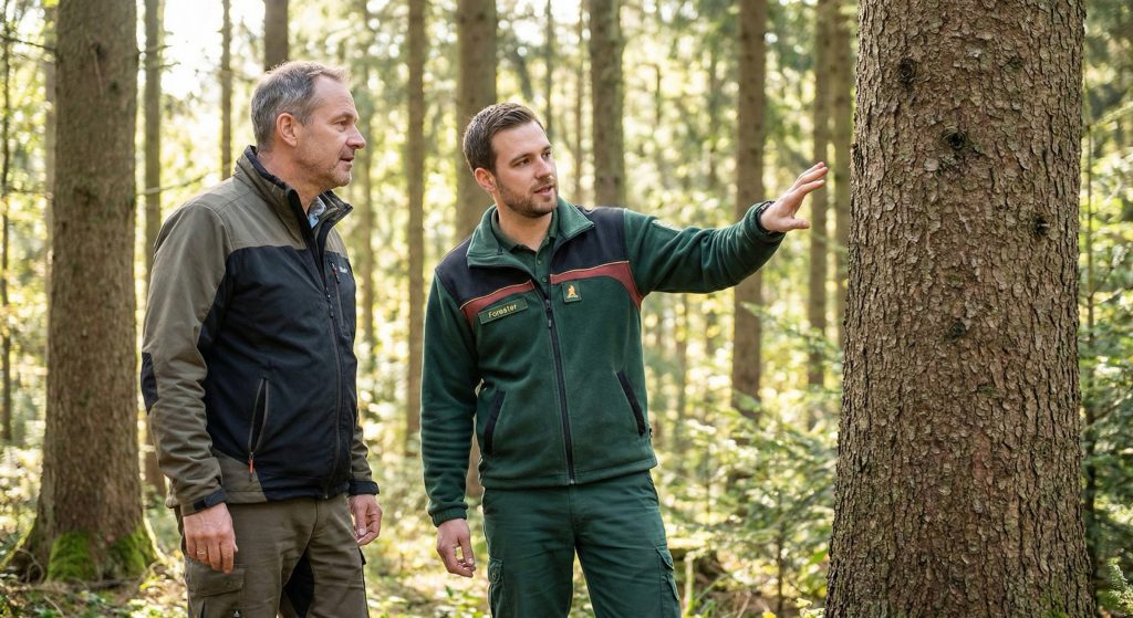 Alles beginnt mit Daten. Wir analysieren Ihre Fläche (ggf. via Drohne/Satellit) und bewerten den Bestand. Sie erhalten ein Festpreis-Angebot, das Ernte und Holzvergütung klar aufschlüsselt. Keine versteckten Kosten