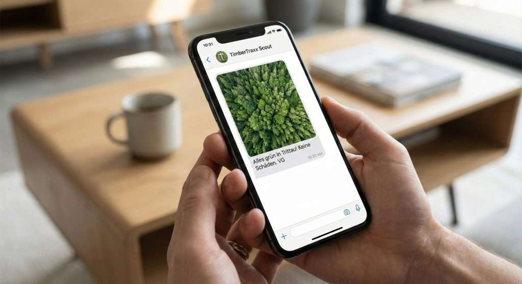 Die Lösung: Der „Wald-Wächter“. Wir sind Ihre Augen und Ohren vor Ort. Statt Ungewissheit bekommen Sie quartalsweise Updates direkt auf Ihr Smartphone. Das gute Gewissen gibt es inklusive.