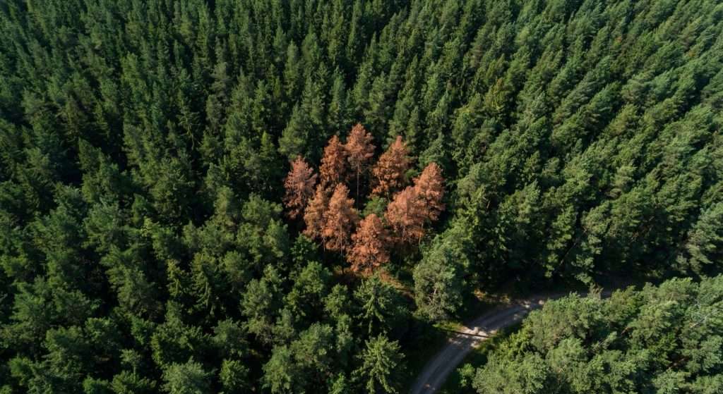 Wir sehen mehr als der Spaziergänger. Unsere Drohnen erkennen Stresssymptome in den Baumkronen, bevor sie vom Boden sichtbar sind.